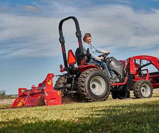 Max tractors offer 20-21 hp at the rear PTO and an operating weight from 1,715 to 1,973 lbs. With that kind of power and stability, you can easily operate most CAT1 implements. Or connect a Mahindra backhoe for nearly 7 feet of dig depth with more than one ton of bucket dig force.